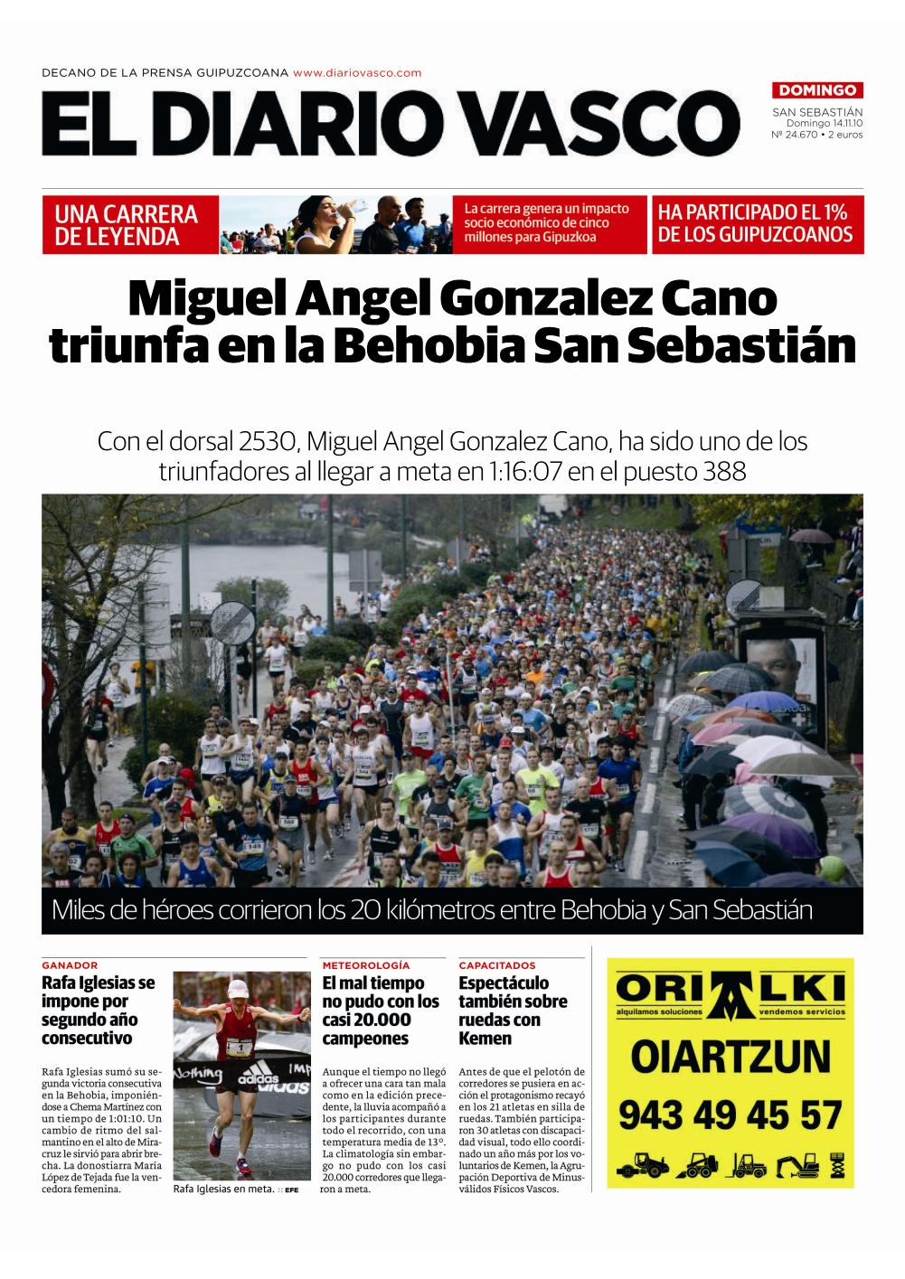 El próximo domingo 13 de noviembre se dará la salida de la 47ª edición de la espectacular Behobia-San Sebastián. Una impresionante y dura carrera de 20 kms de distancia que une estas dos localidades, rodeados en todo momento por un precioso entorno y un todavía más espectacular ambiente, en donde los espectadores a lo largo de todo el asfalto no cesan en animar a los más de 20000 corredores.