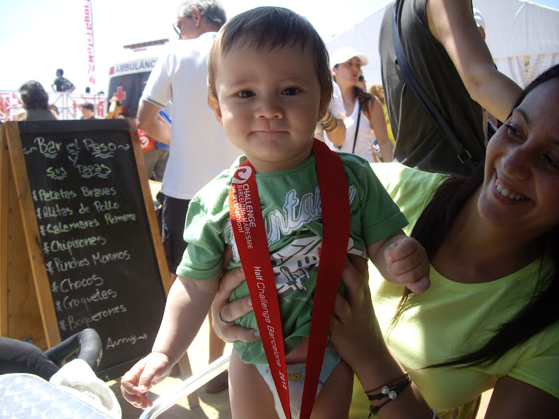 Busco a Raquel por las gradas, me pasa al niño en brazos y el tiempo se me detiene… Cuántas veces había soñado con este momento! Poder compartir un final de carrera junto al pequeñín de la casa. Entre un ligero trote y caminando tranquilamente avanzo hacia la meta, disfrutando del momento… Sensación indescriptible. No hay palabras.