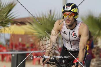 Solo bajarme de la bici y ponerme a correr veo que las piernas responden perfectamente y que la bici no me ha pasado un factura excesiva. Corro con el Garmin, por lo que me voy controlando el ritmo por km. El circuito de carrera a pie consiste en dar dos vuelta de 10’5kms desde Calella hasta Santa Susanna y vuelta, cruzándonos continuamente entre los competidores, por lo que podía controlar bien a los triatletas de mi grupo de edad que iban por delante mío. Los primeros 5 kms caen entre 3’40 y 3’50/km. Este primer trayecto de ida no dejaba de mirar dorsales para tener una referencia de donde me posicionaba en mi grupo de edad. Aproximadamente me bajé a correr en la 7ª posición y veía como iba recortando distancias a medida que pasaban los kilómetros.