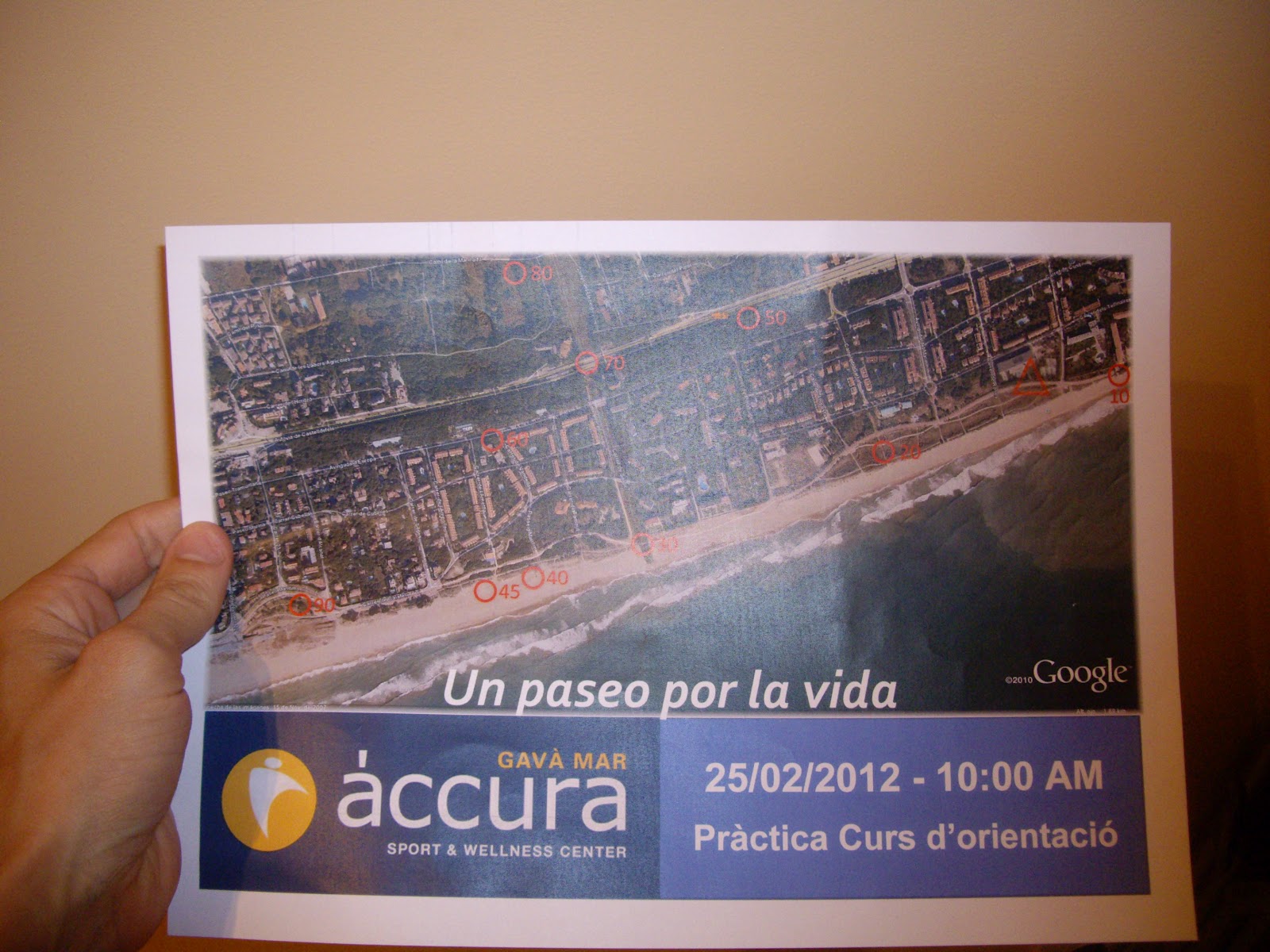 Formamos equipos por parejas, a las que entregamos un mapa en el que estaban marcadas las balizas y a lo largo de todo el recorrido, y con un tiempo máximo de 1 hora, debían encontrarlas y marcarlas en su cartilla para ir sumando puntos. Habían un total de 11 balizas escondidas en una superfície aproximada de 1km2 (que se dice pronto…). Diez de ellas señaladas sobre el mapa y una final sorpresa dentro del recinto de Áccura.