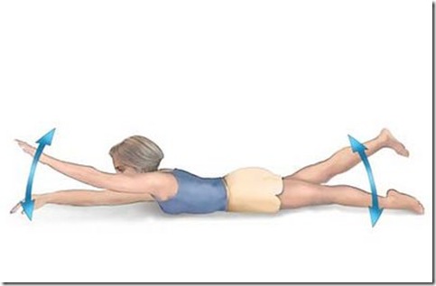 * Elevamos el brazo derecho al tiempo que elevamos la pierna izquierda unos 25 centímetros (o tan alto como nos sea posible sin incomodarnos ni sobre exigirnos)