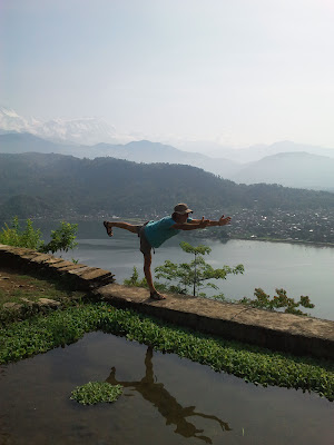 Rafael Valencia practicando yoga junto a las cumbres de los Himalayas.
