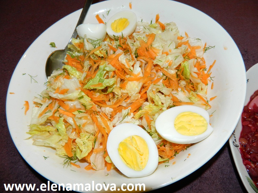 Aquí tengo lechuga, zanahoria rallada, hinojo (parte verde), par de gotas de aceite de oliva, jugo de limón y sal marina. Y claro un poco más de huevos, me encantan, son buenisimos para la salud, olvidan de este mito tonto sobre colesterol! Deliciosa ensalada, sana y fácil!