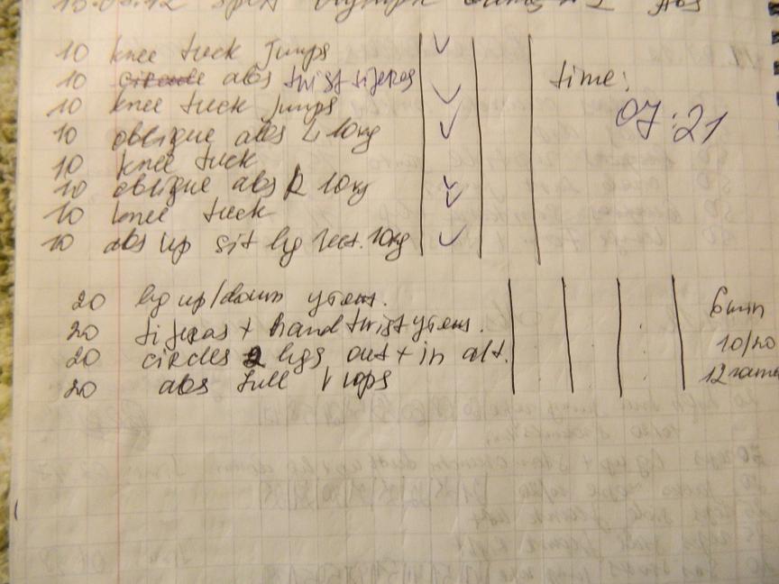 Algunos de ustedes me pidieron mostrar mi cuaderno y estilo como yo apunto las rutinas, aquí les dejo mi cuaderno con esta misma rutina para ustedes se dan cuenta y organizan sus notas 🙂