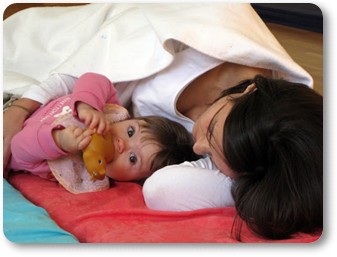 Cuido mucho de que el espacio donde se realizan actividades con bebés, sea acogedor, limpio, aireado, con luz natural, temperatura adecuada… Además de cumplir requisitos como: que no haya objetos peligrosos a su alcance, los enchufes tapados, que tengan accesorios (cojines para los más pequeños), sitio para gatear y un suelo de «cuadros de colores» para jugar cómodamente.