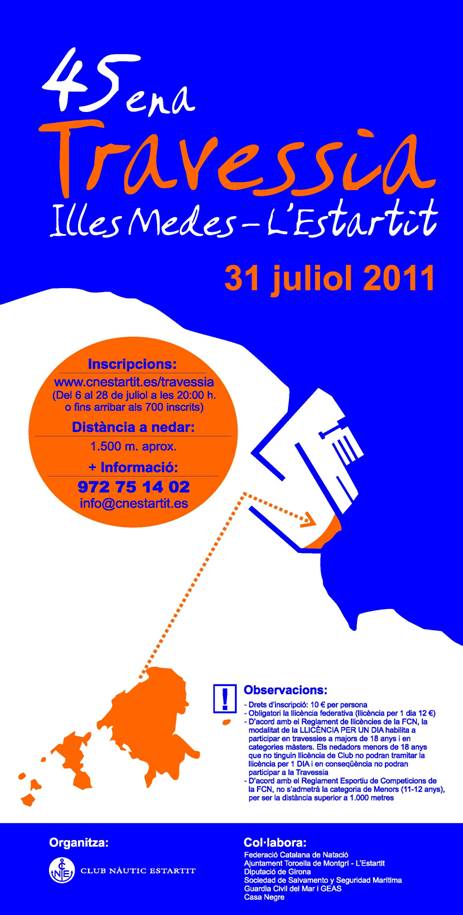 Este próximo domingo participaré por segunda vez en la Travessia de les Illes Medes (L’Estartit). Una travesía popular, de unos 1500m de distancia aproximadamente, con la particularidad de que nos llevan en barcos hacia una pequeña cala de las Medes y desde ahí, una vez dada la salida, hemos de llegar a nado al puerto de l’Estartit.