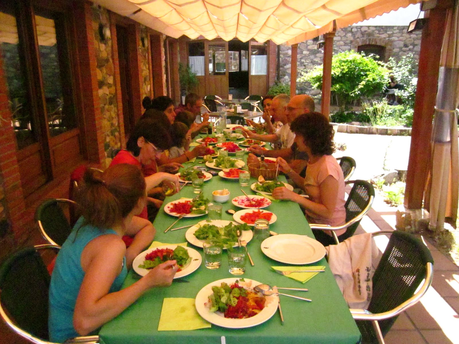 La práctica de yoga desde las 7:30 de la mañana, la detoxificación que nos proponía el curso, a base de vegetales, frutas y te verde, el entorno de la poderosa montaña de roca y desfiladeros, el limpísimo cielo azul, el calor, las charlas sobre salud y nutrición con el dóctor Calvo, la buena gente de la casa, los baños en el río de aguas más que frescas, un paseo en la noche por las calles del pueblo… las sensaciones de la práctica con la dieta austera, compartir esas sensaciones, emociones que salen sin contener… un retiro de práctica… siempre benefactor, siempre lleno de beatitud…